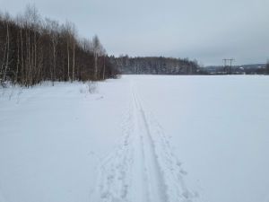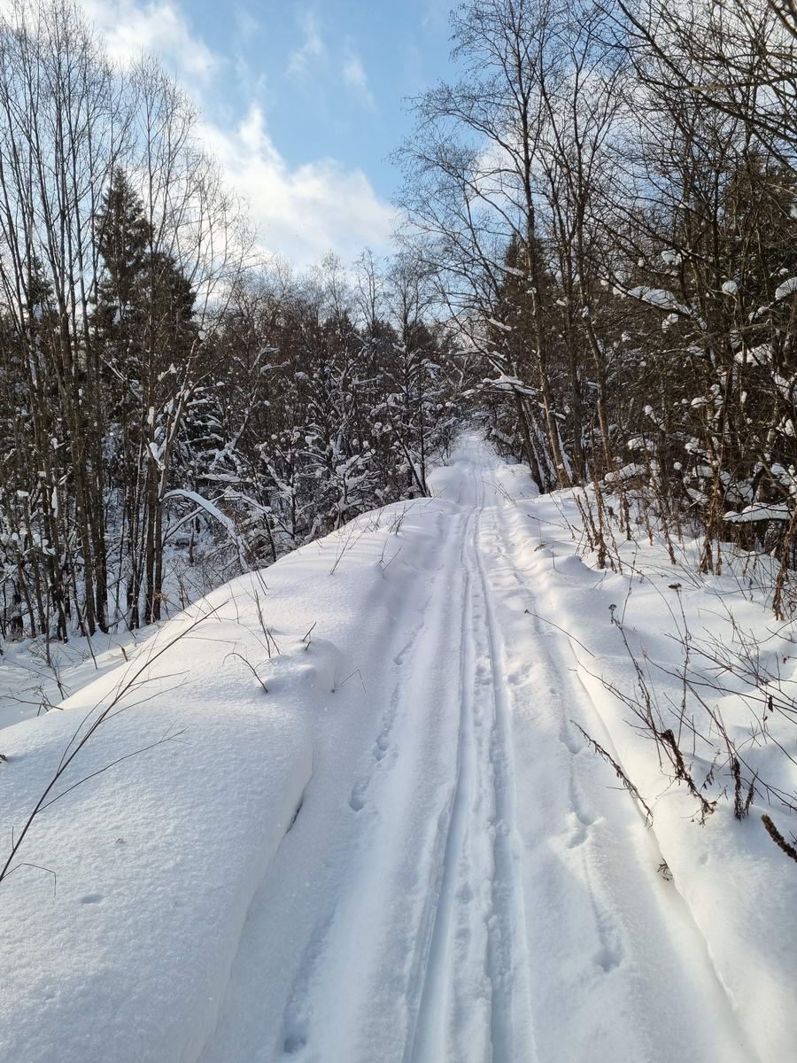 Лыжня в превосходном состоянии: хорошо раскатана и отчетливо видна. |