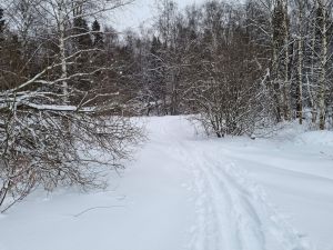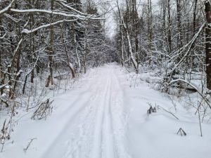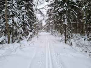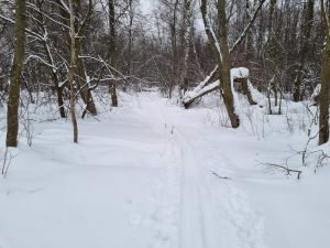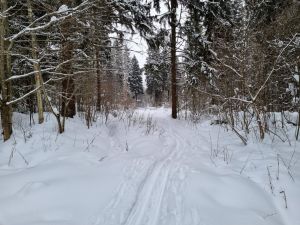 Лыжня в неудовлетворительном состоянии: плохо видна, заледенела, местами истоптана, в лесу ветки-шишки-иголки. |