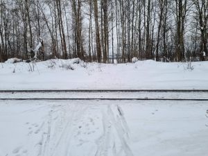 За железной дорогой вся лыжня, проходящая по узкоколейке, уничтожена упырями на снегоходах. |