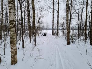 | 10 |  | Поваленное дерево | Вскоре на пути встретится ствол дерева поперек дороги: придется присесть пониже. Хорошая преграда, которая защищает лыжню от техники. |